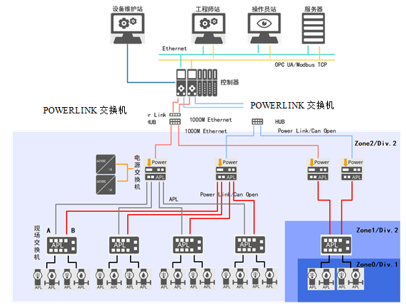 POWERLINK-APL系统可以通过控制器、POWERLINK网络、电源交换机、现场交换机对管理数据的转发,实现对现场不同设备的EDD文件获取和解析,对各仪表设备进行统一管理。不需要额外配置手操器进行就地调试,支持远程联合调试,让调校更加便捷。